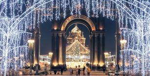 - Осмотр Главного Храма Вооруженных Сил РФ - это храм в честь Воскресения Христова, посвященный 75-летию Победы в Великой Отечественной войне, а также ратным подвигам русского народа во всех войнах, выпавших на долю нашей страны. Стены храма украшены росписями с батальными сценами из военной истории. Фасады здания отделаны металлом. Отделка нижнего (малого) храма выполнена из керамики и украшена гжельской росписью. Отделка храма, икона и иконостас созданы из меди с эмалями, как это делалось на походных воинских иконах. Своды храма собраны из витражей с изображением орденов, которыми награждали за ратные подвиги в разные периоды истории России. Образ Спаса Нерукотворного в центральном куполе храма - самое большое изображение лика Христа, выполненное в мозаике.