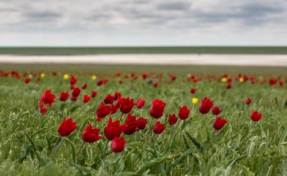 - Поездка на цветущие тюльпановые поля. Фотосессия. Каждый год в середине апреля в калмыцких степях можно наблюдать необычное зрелище –массовое цветение тюльпанов в естественных условиях. Может быть, вам даже повезет найти легендарный черный тюльпан, который цветет лишь один раз в девять лет и приносит счастье нашедшему.