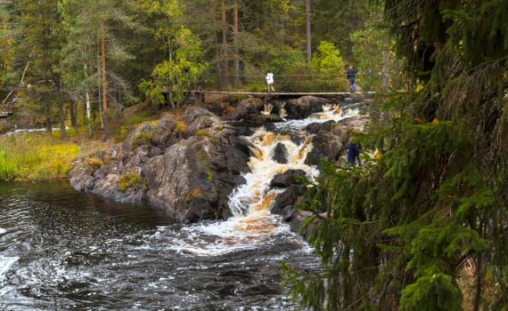 - Рускеальские водопады Ахвенкоски - небольшие, но живописные каскады на лесной реке Тохмайоки привлекли в свое время многих кинорежиссеров: здесь проходили съемки знаменитых кинофильмов «А зори здесь тихие», «Темный мир». Экологический маршрут, который вьется вокруг водопадов, приглашает любителей природы на прогулку на свежем воздухе, чтобы познакомиться с окружающим ландшафтом поближе и найти сказочных персонажей на «Алее сказок». Подвесные мостики, протянутые прямо над водопадами, завершают маршрут и позволяют сделать самые потрясающие кадры. Дополнительно можно прогуляться по экотропе: (300 р./взр., 250 - шк., студ., дети до 7 лет - бесплатно).