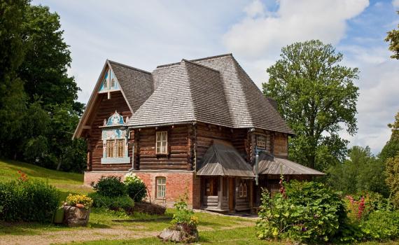 - 15:30 Посещение историко-архитектурного комплекса "Теремок", который расположен в усадьбе князей Тенишевых - коллекционеров и меценатов, игравших большую роль в культурной жизни Смоленска и всей России. На рубеже XIX-XX веков дворянское имение в селе Талашкино стало гостеприимным домом для представителей творческой интеллигенции. Здесь Мария Клавдиевна Тенишева создала художественный центр, который впоследствии стал известен не только в России, но и в Европе. Этот комплекс своими фантастическими росписями, напоминает домик, сошедший со страниц старых добрых сказок. По эскизам Н.К. Рериха была создана смальтовая мозаика "Спас Нерукотворный" над порталом церкви Святого Духа. На хуторе сохранилось здание бывшей сельскохозяйственной школы, восстановлен класс, где учили крестьянских детей и представлены предметы народно-прикладного искусства. Здесь можно увидеть изделия талашкинских мастерских, мебель, изготовленную по эскизам С.В. Малютина, акварели М.А. Врубеля, керамику Н.К. Рериха и расписные балалайки, произведшие фурор на Всемирной выставке 1907 года в Париже. А еще здесь была расписана первая матрешка.