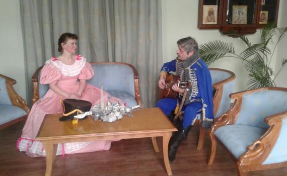 -  Участие в увлекательной интерактивной программе "Господа Гусары" - это реконструкция событий XVIII - XIX века. Вас встретят перед входом в здание гусары. Они расскажут историю возникновения гусарского костюма, интересные факты о быте и подвигах на военных и любовных фронтах. Для вас прозвучат романсы на стихи М. Лермонтова, А. Пушкина, Д. Давыдова. Вы попробуете открыть бутылку шампанского саблей, сыграть в гусарский крикет, разрубить яблоко. Так же возможны конкурсы с веером, подковой и картами. Гусары будут танцевать с вами бальные танцы XIX века. Танцевать смогут все, даже те кто никогда не пробовал.