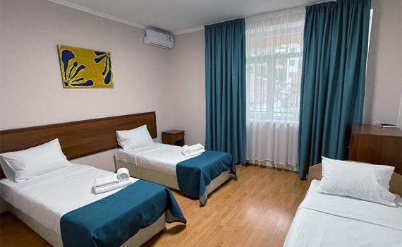 - Размещение в отеле "Герника", расположенном в тихом месте района старой Гагры в 150 метрах от берега Черного моря. Для вас 2-х, 3-х и 4-х местные номера повышенной комфортности со всеми удобствами. Можно заказать 1-местное размещение за доплату. Отель находится в самом "сердце" курортной части города. Из номеров открывается прекрасный вид на окрестности, на море и на склоны горы Мамзышха. В шаговой доступности - городская набережная и протяженный пляж, пекарни, аквапарк и дельфинарий, кофейни, магазины, кафе и ресторации города. Прогулка вдоль моря по променаду от отеля до знаменитого парка принца Ольденбургского, занимает буквально пятнадцать минут.